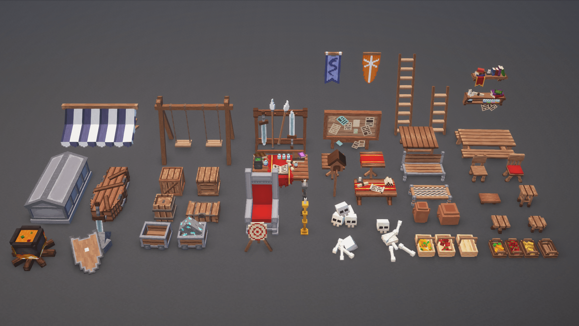 Bring your structures to life with over 50 new props and furniture pieces made specifically for BetterStructures (but that you can use anywhere)!